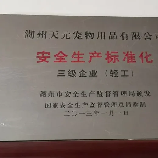 Huzhou Tianyuan achieved “Safety Production Standardization Level 3” and “Safety Production Integrity Management Level A.”