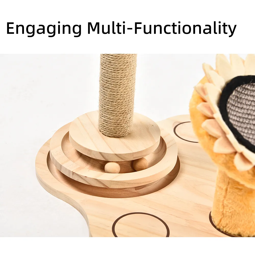 • Doppellagiger Kugelbahnboden: Auf der Basis befindet sich eine zweistufige Kugelbahn mit rollenden Holzkugeln, die Ihre Katze jagen und betatschen kann. Dieses Design fördert die geistige Stimulation und befriedigt den Jagdinstinkt Ihrer Katze.