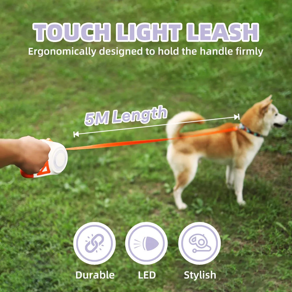 • LED-Taschenlampe für Nachtwanderungen - Diese LED-Licht-Hundeleine verfügt über eine durch Berührung aktivierbare LED-Taschenlampe, die für Sichtbarkeit und Sicherheit bei nächtlichen Spaziergängen sorgt.
