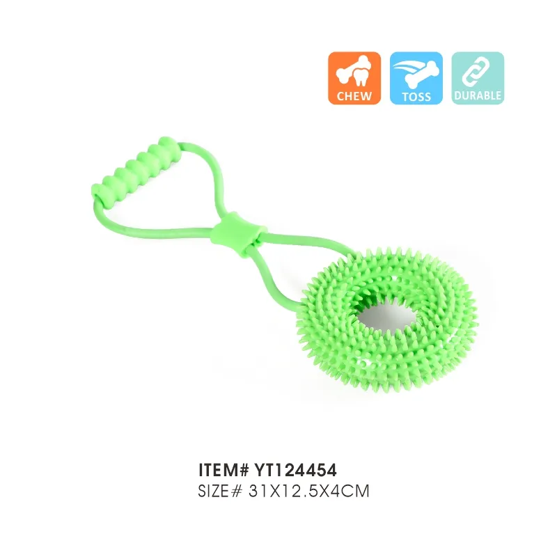 1.Material TPR: Nuestro juguete Fetch Dog Ring Toss está hecho de material TPR (caucho termoplástico) de alta calidad que es conocido por su durabilidad y flexibilidad. Puede soportar los masticadores más duros y ofrece tiempo de juego de larga duración.