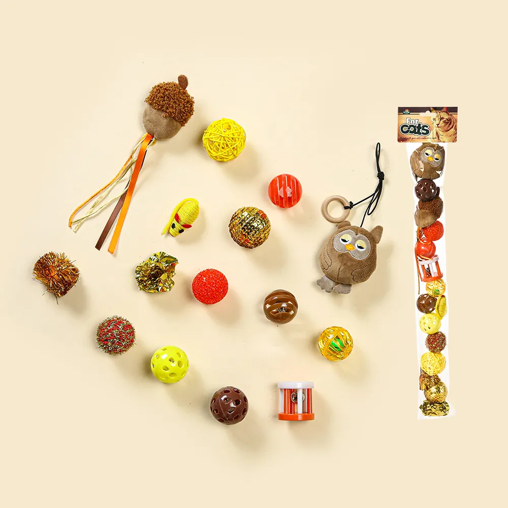Cat Toy Set Holiday 15Pcs Play Teaser Ball Pack Toy Pet Cat Toy Gift