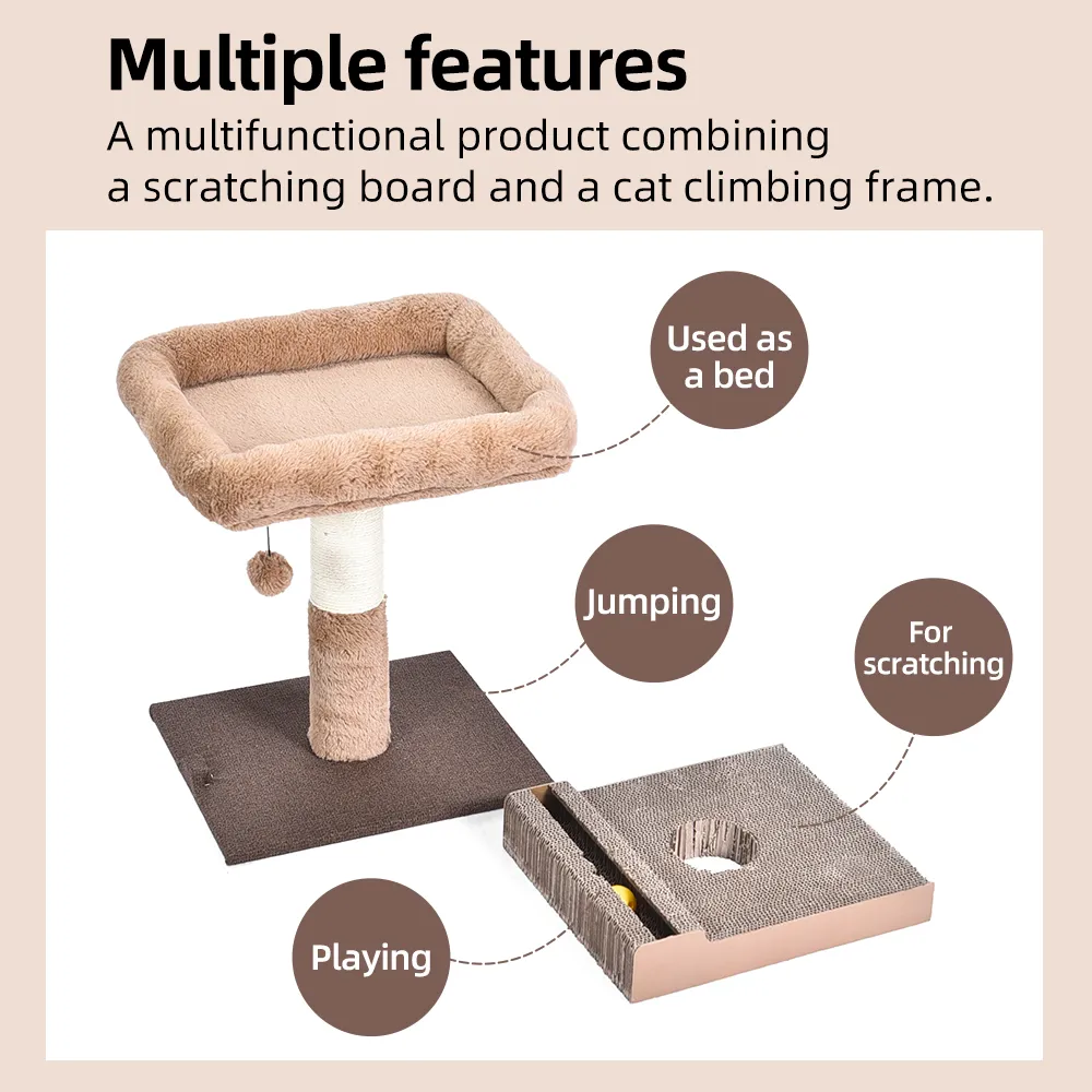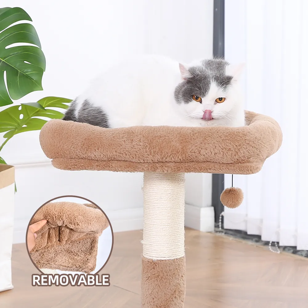 Questo albero per gatti di design unisce funzionalità e divertimento, offrendo al vostro micio uno spazio per graffiare, giocare e riposare, il tutto in un design compatto. Con una palla rimovibile, una piattaforma in morbido peluche e tiragraffi integrati, è l'aggiunta perfetta a qualsiasi casa che ami gli animali.