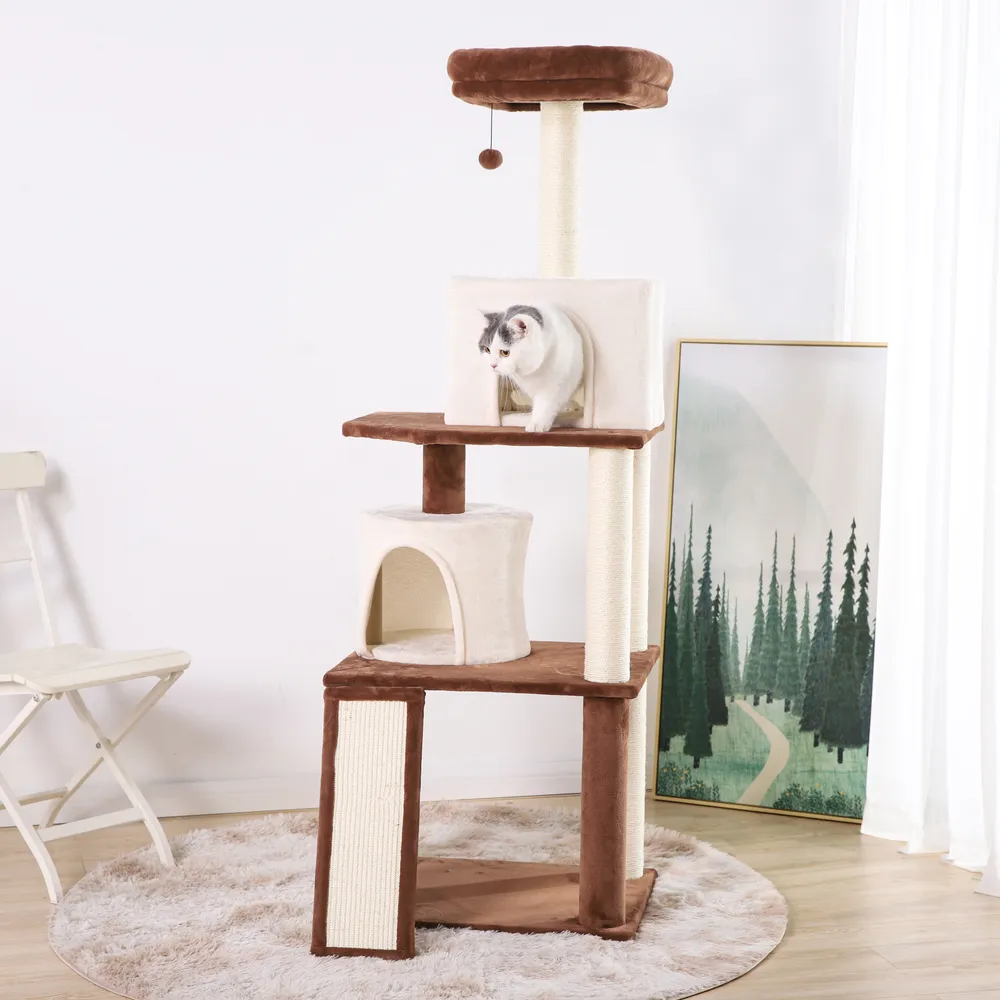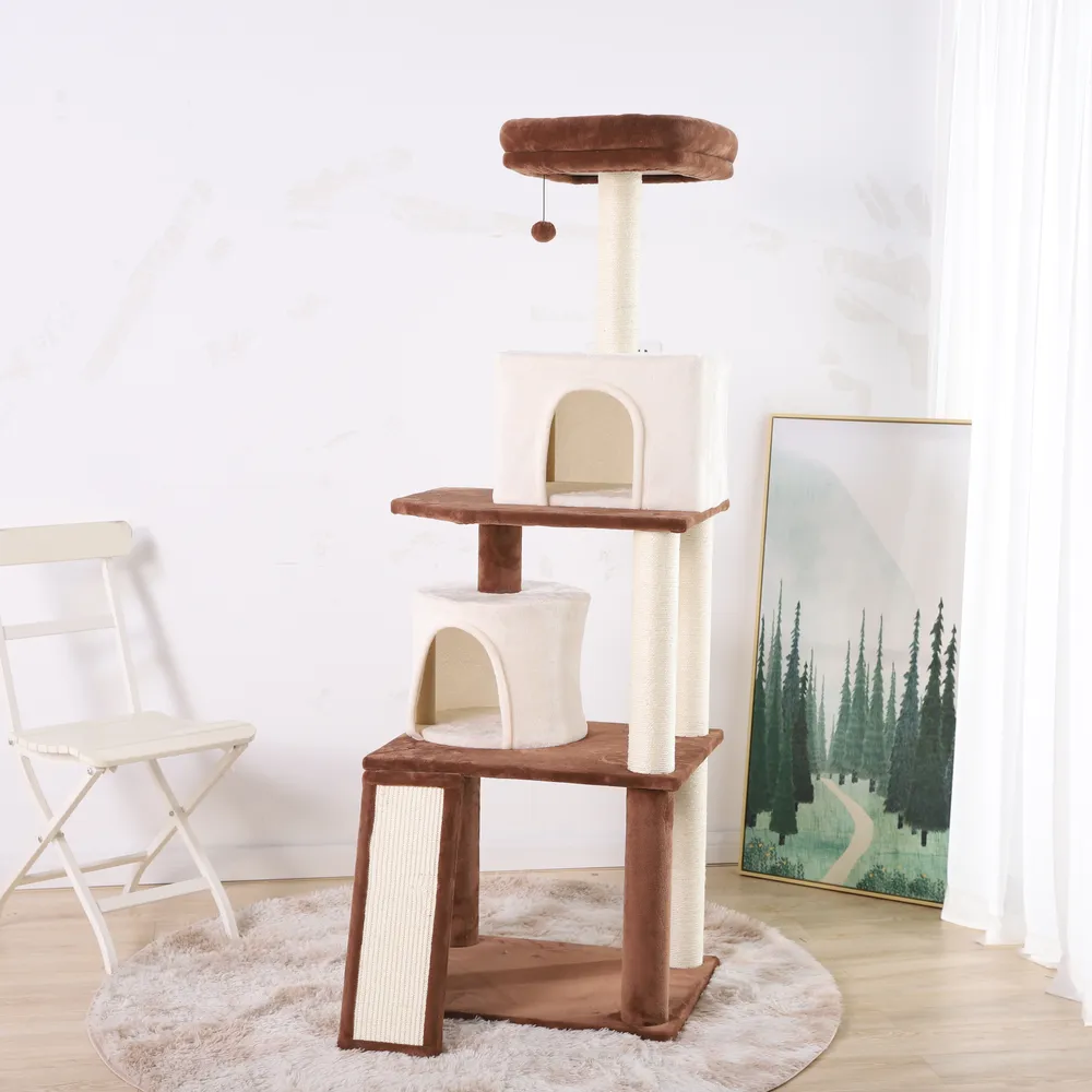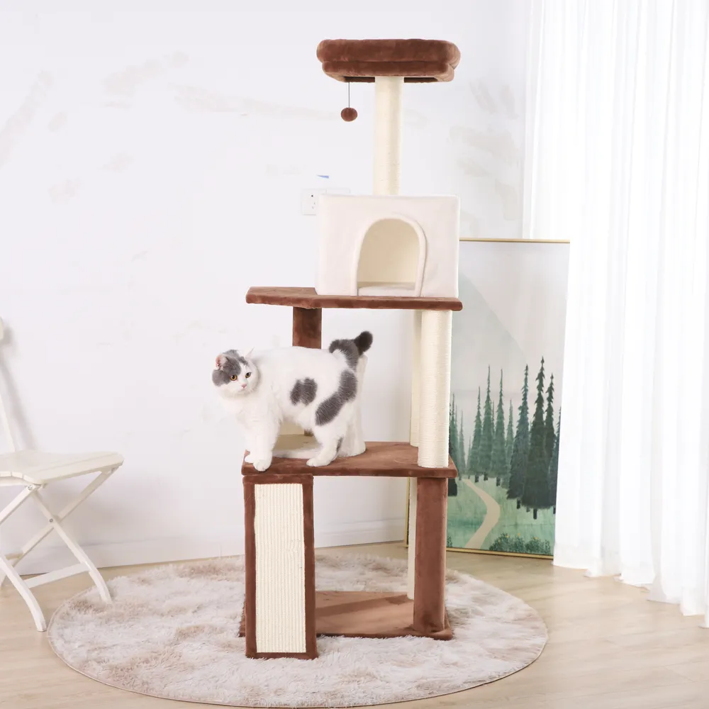 3.Posto in sisal per un sano graffio Mantenere il naturale comportamento di graffio del gatto è fondamentale per il suo benessere e il nostro albero per gatti include un robusto paletto avvolto in sisal, perfetto per promuovere le sane abitudini di graffio. Il resistente materiale in sisal garantisce la longevità dell'albero, anche con i graffiatori più entusiasti.
