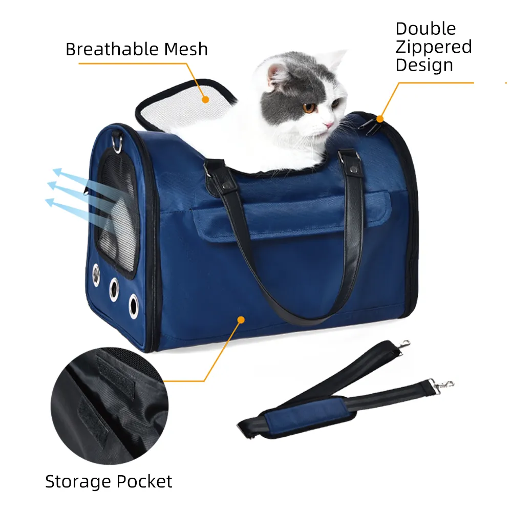 2. 通気性メッシュ構造.通気性の良いメッシュパネルでデザインされたキャットキャリーバッグは、旅行中のペットに適切な通気性を提供します。この機能は空気の循環を促進し、長時間の移動でもペットを涼しく快適に保ちます。