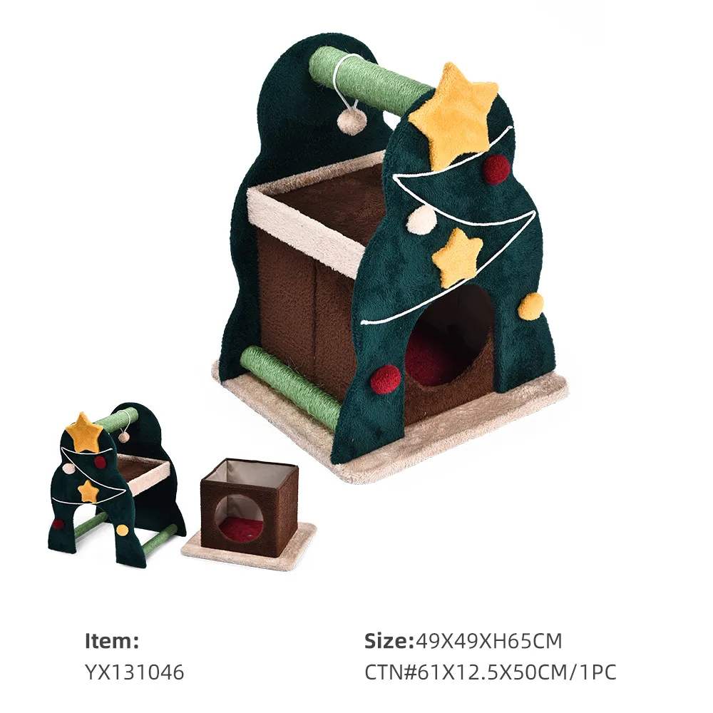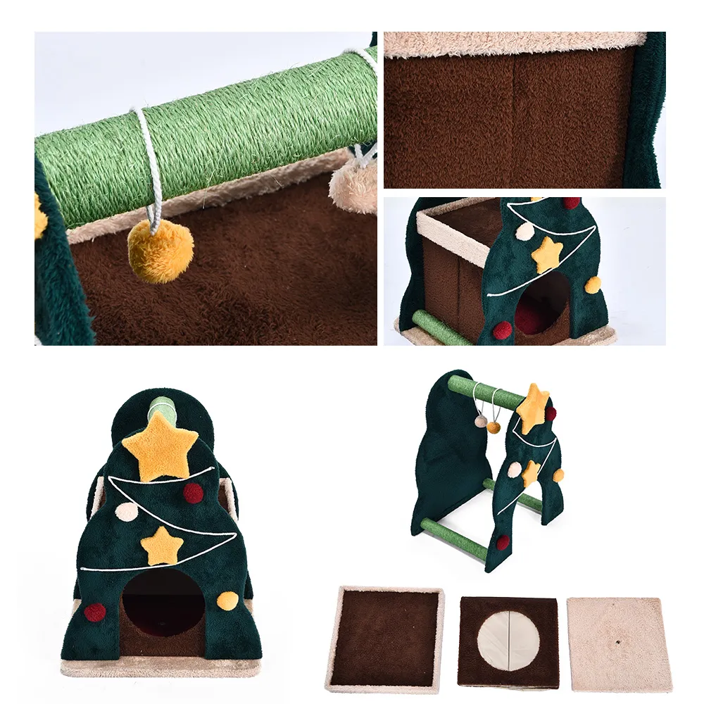 クリスマス・キャットコンドで、ホリデーシーズンをお祝いしましょう。クリスマスツリーの形をしたこのコンドは、取り外し可能なキャットコンド・キューブ、スクラッチポスト、吊り下げ式のぬいぐるみボールが付いていて、猫ちゃんが楽しめるようになっています。