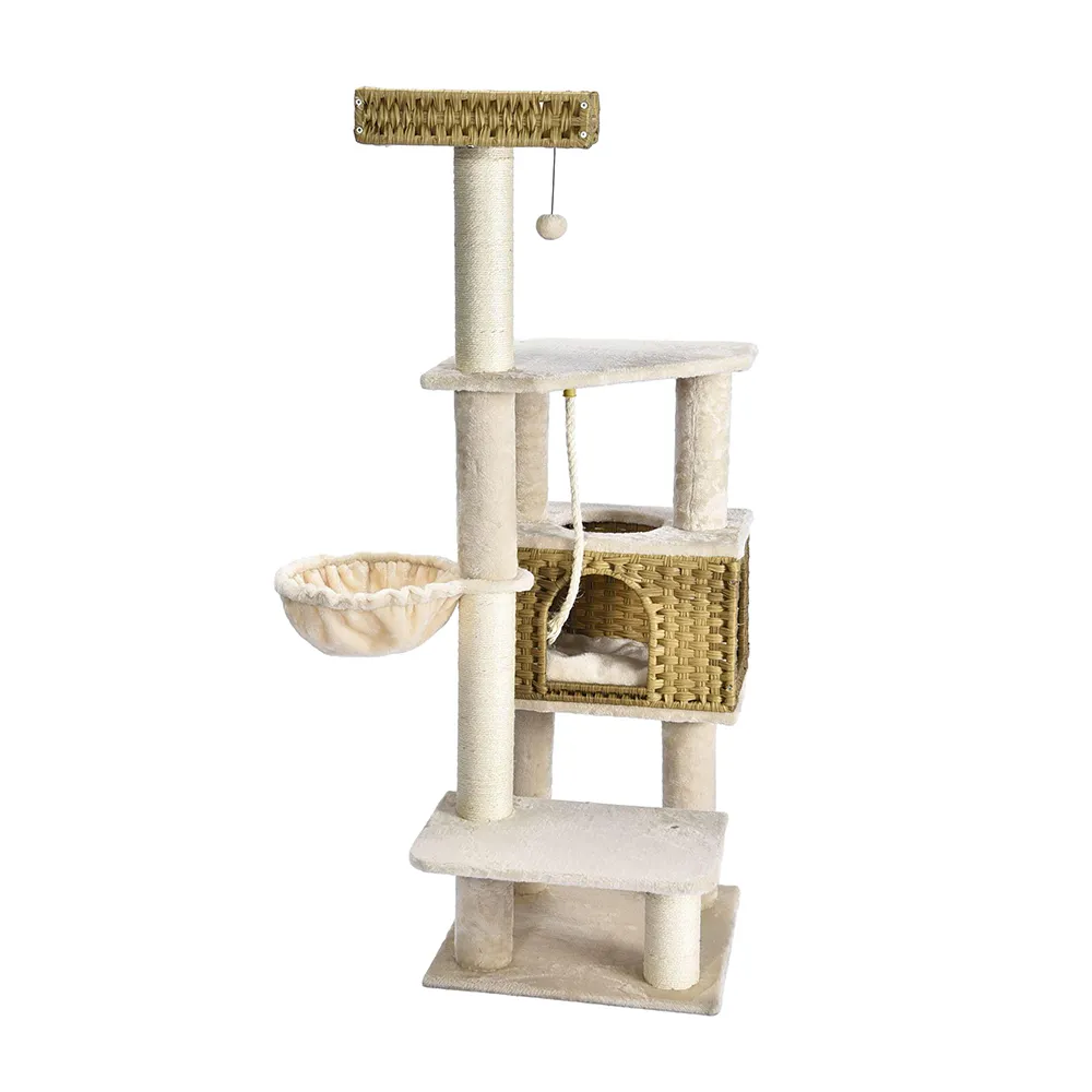 ラタン キャット コンドミニアム キャットタワー ツリーハウス バスケット付き