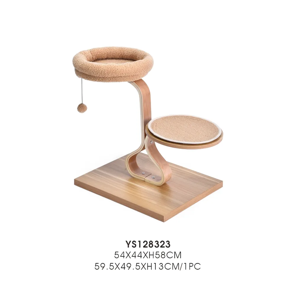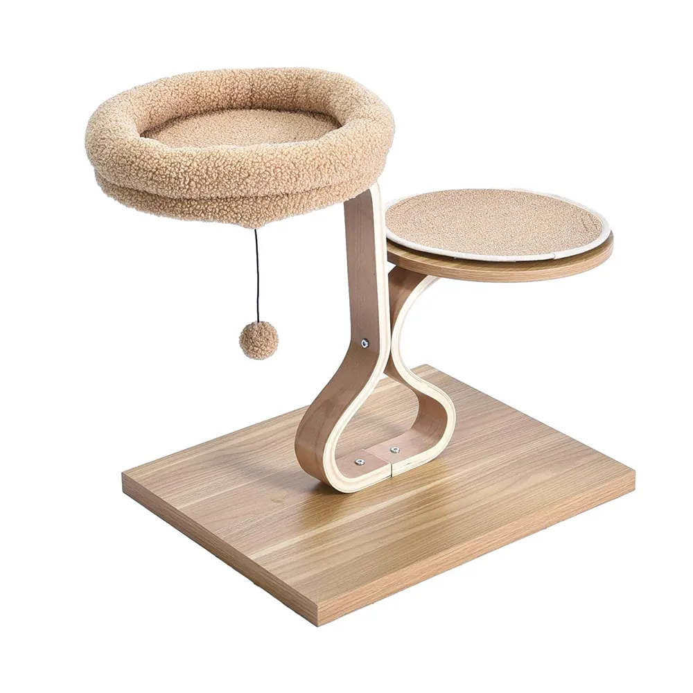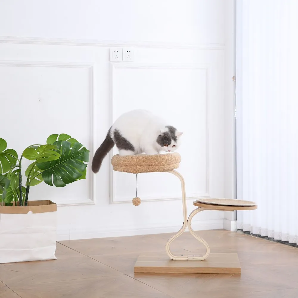 3. 아늑한 휴식 공간을 위한 탈착식 봉제 침대: 편안함을 더해주는 구부러진 나무 고양이 스크래처에는 탈착식 플러시 침대가 포함되어 있습니다. 이 아늑한 추가 기능은 고양이에게 다양한 높이의 등반 프레임에서 편안한 휴식 공간을 제공합니다. 탈착식 기능으로 청소와 관리가 간편하여 고양이가 편안하게 쉴 수 있는 위생적이고 안락한 공간을 보장합니다.