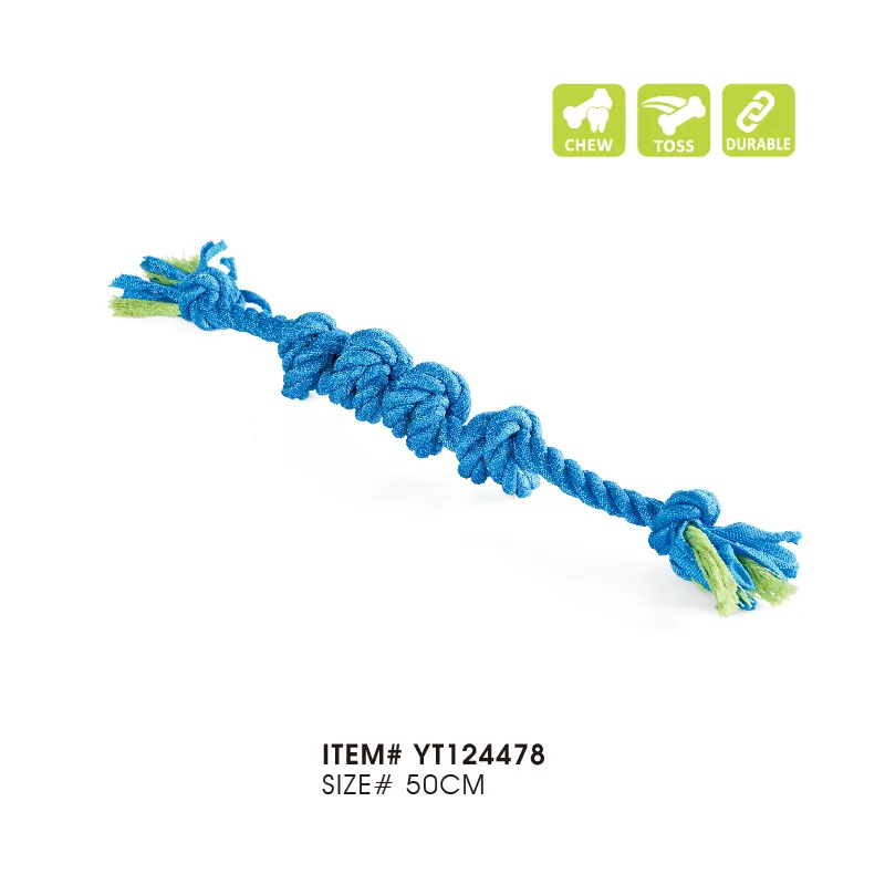 상호작용 놀이를 촉진하고 반려동물의 씹는 본능을 만족시킬 수 있는 튼튼하고 매력적인 반려견 장난감을 찾고 계신가요? Petstar는 덤벨 모양이 특징이며 튼튼한 씹을 수 있는 로프로 만든 잡아당기기 및 던지기 개 장난감을 도매로 제공합니다. 맞춤형 서비스를 통해 타겟 고객에게 어필하고 브랜드를 소개할 수 있는 맞춤형 디자인을 만들 수 있습니다.