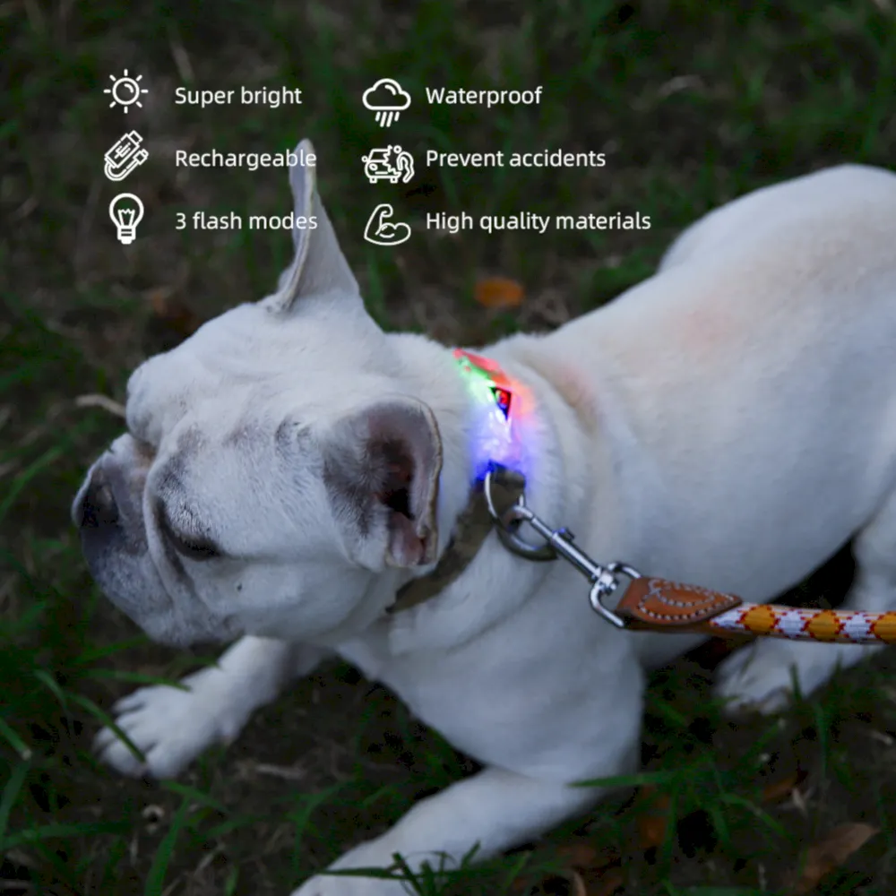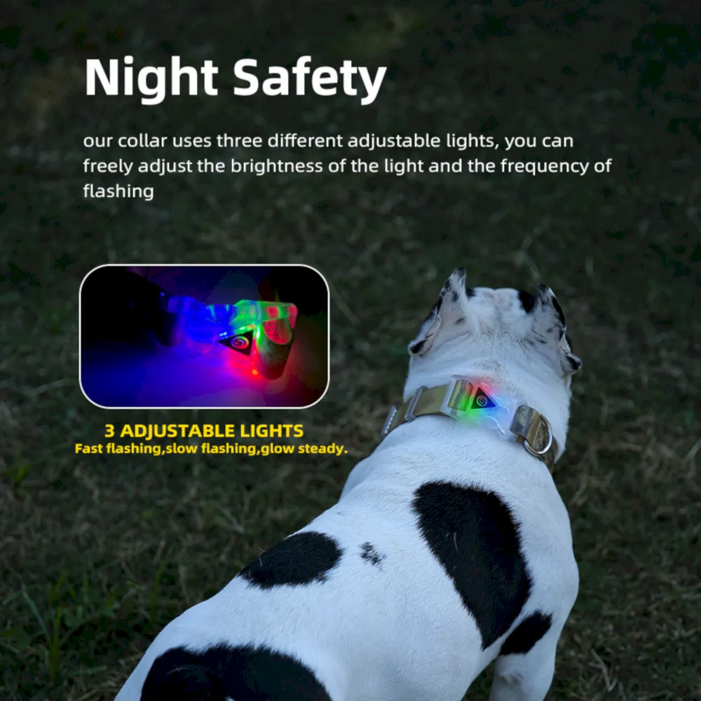 LED 개 목걸이 방수 3조절 조명 반려동물 안전 목걸이는 가시성, 내구성, 편안함을 모두 갖춘 제품으로 방수, 방오 디자인, 조절 가능한 핏, 퀵 릴리스 버클, 견고한 D링으로 야간 산책 시 안전과 편리함을 보장합니다.