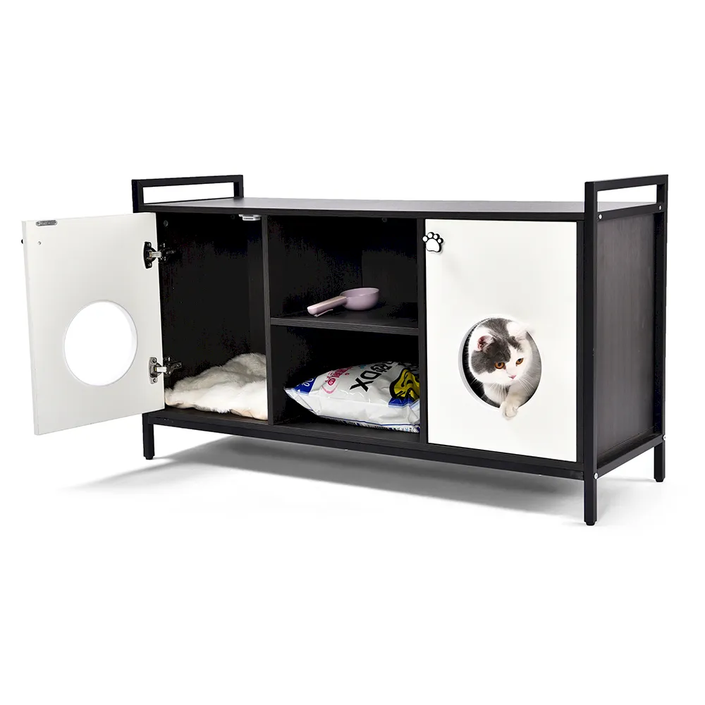 2. 이중 숨겨진 공간: 거실을 어지럽히는 보기 흉한 쓰레기통과 반려동물 용품은 이제 안녕이에요. 저희 가구는 하나도 아닌 두 개의 숨겨진 수납공간을 자랑합니다. 이 숨겨진 공간은 고양이의 필수품을 눈에 띄지 않게 보관할 수 있도록 독창적으로 설계되어 집안을 깔끔하고 정돈된 상태로 유지해줍니다.
