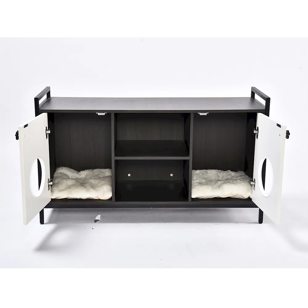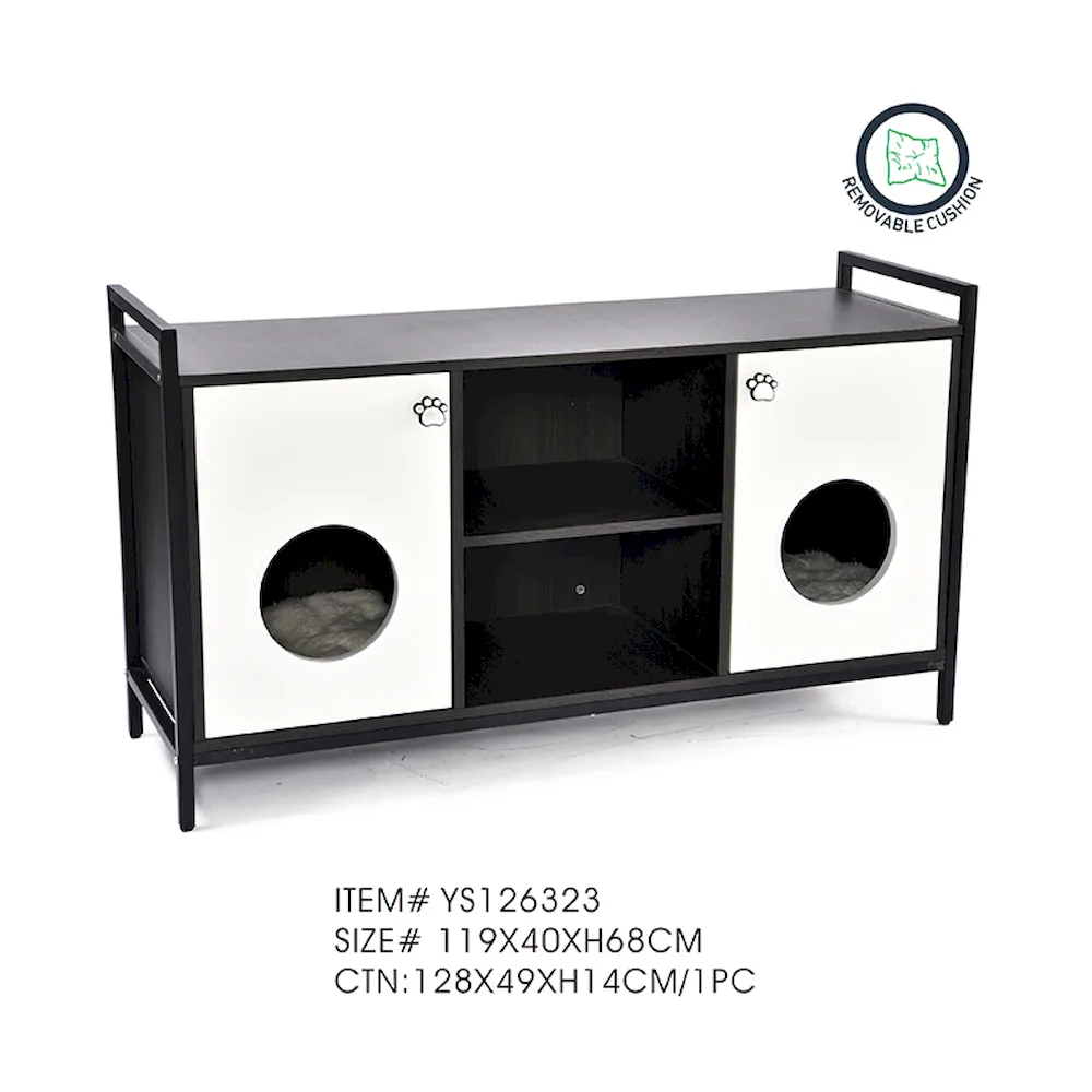 5. 이중 저장 공간: 정리 정돈이 그 어느 때보다 쉬워졌습니다. 모던 고양이 콘도 가구는 두 개의 넓은 수납공간을 갖추고 있습니다. 반려동물 용품, 액세서리 또는 기타 가정용품을 깔끔하게 보관하여 어수선함을 줄이고 생활 공간을 개선하는 데 적합합니다.