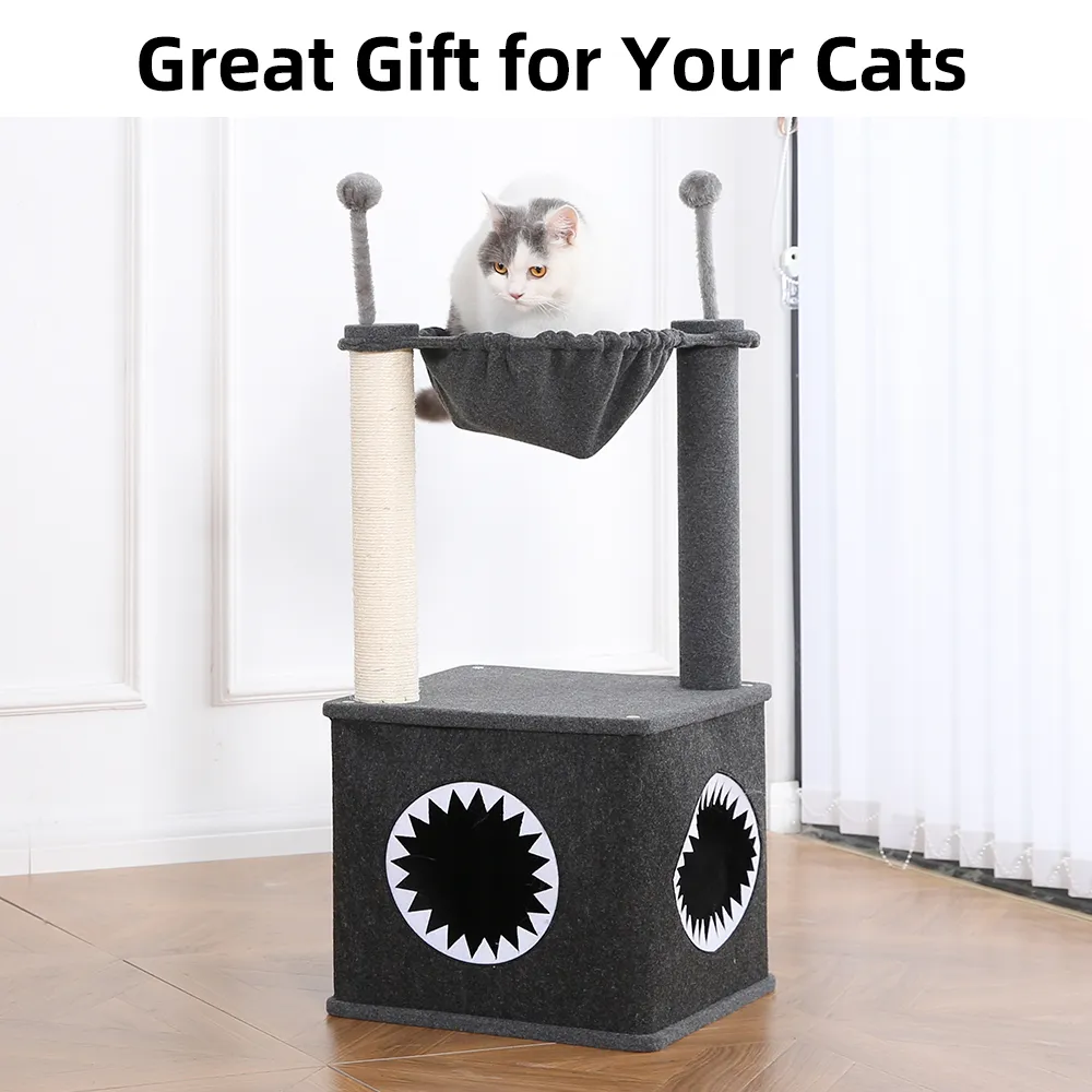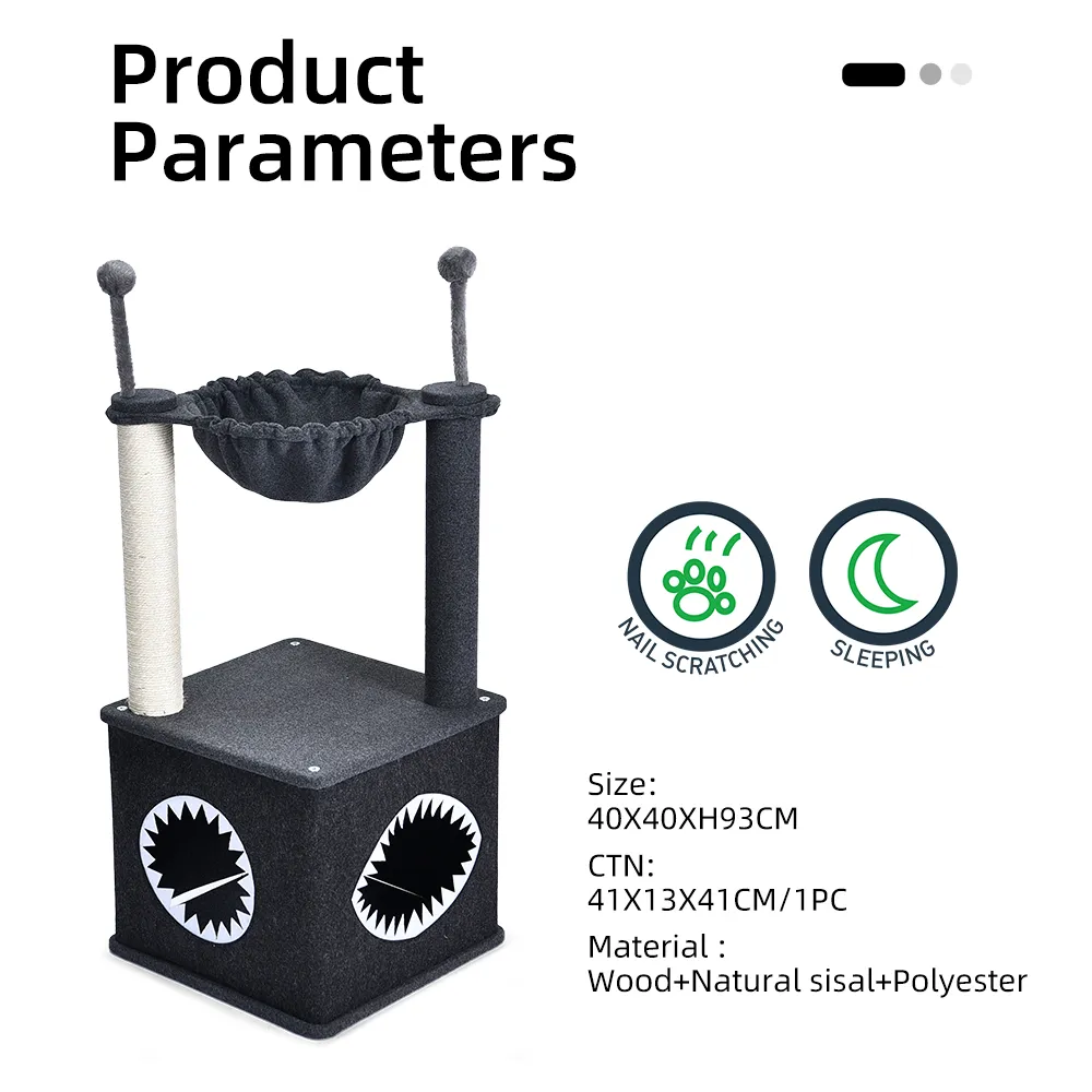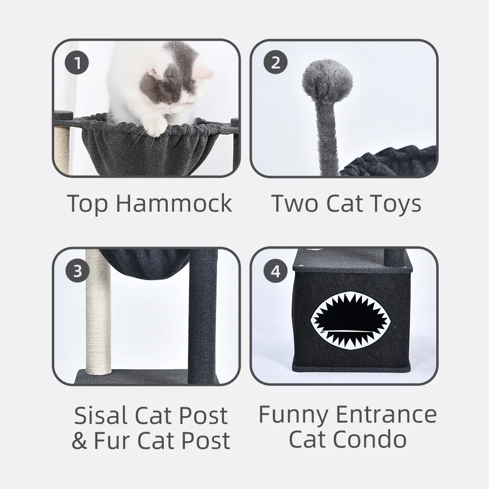 개방형 콘도, 튼튼한 해먹, 장난기 가득한 스탠딩 봉제 공으로 구성된 모던 캣 트리로 고양이의 생활 공간을 업그레이드하세요.