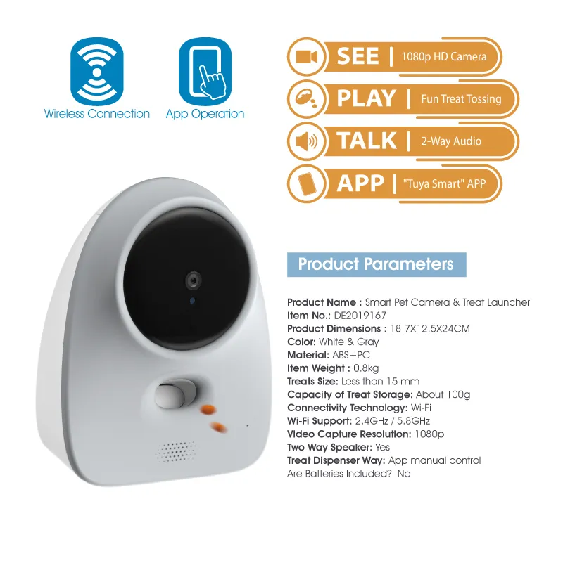 1. 다양한 상호 작용: 카메라와 간식 런처가 내장되어 있어 언제 어디서나 반려동물과 함께 보고, 대화하고, 놀 수 있습니다.