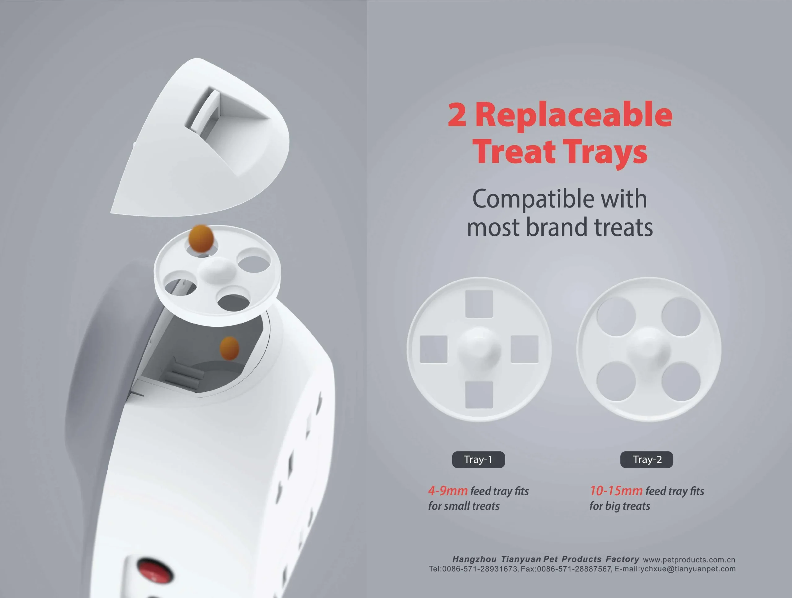 12. 교체 가능한 간식 트레이: 교체 가능한 두 개의 간식 트레이가 함께 제공되어 작은 간식부터 큰 간식까지 다양한 크기(4-9mm, 10-15mm)의 간식을 담을 수 있습니다.
