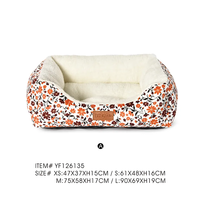 3. Warmte en gezelligheid: Omarm het ultieme in warmte en gezelligheid met ons Bedrukt Hondenbed. De combinatie van de bedrukte stof en ribfluweel zorgt ervoor dat je huisdier ongeëvenaard comfort ervaart, waardoor dit bed de ideale plek is om te dutten, te loungen of gewoon te genieten van een moment van ontspanning. Houd je huisdier behaaglijk en tevreden in elk seizoen.
