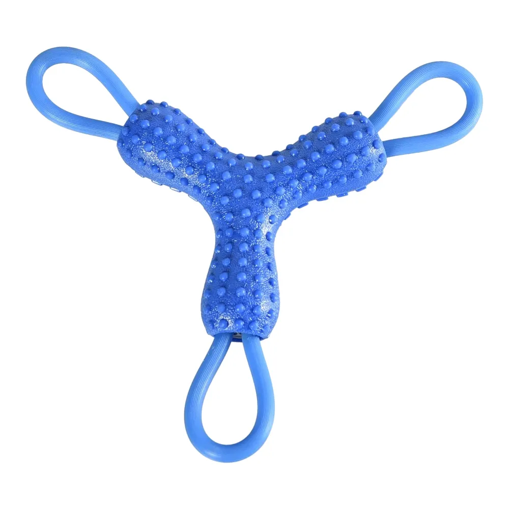 3.Interactief Touwtrekspeelgoed: Het TPR Boomerang Touw Hondenspeelgoed dient ook als interactief touwtrekspeelgoed. Het touwhandvat biedt een comfortabele grip voor zowel jou als je hond, waardoor het ideaal is voor een potje touwtrekken. Dit interactieve spel helpt de band tussen jou en je harige vriend te versterken.