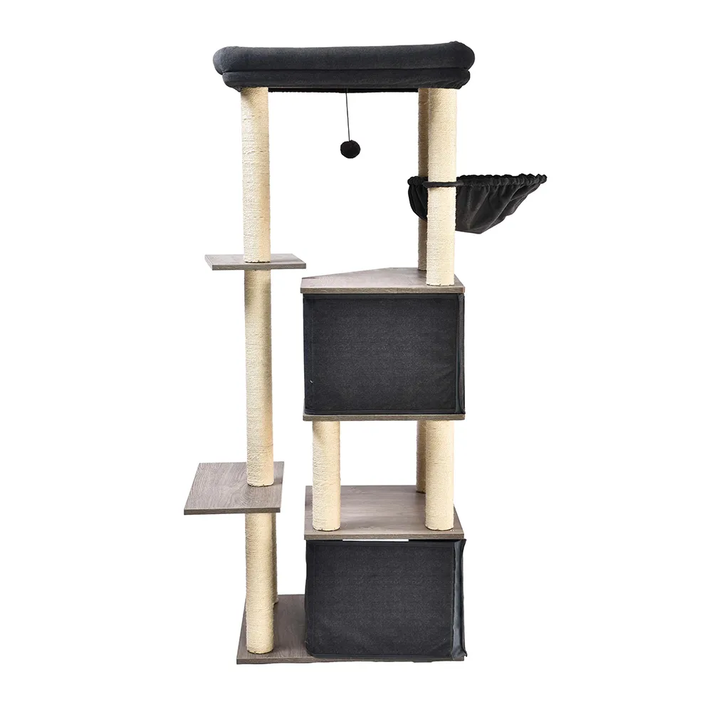 3.Cat Condo: Our cat tower includes spacious cat condos, providing cozy retreats for cats to relax and unwind in privacy. These condos offer the ideal hideaway for cats seeking solitude or a comfortable spot for an uninterrupted nap.