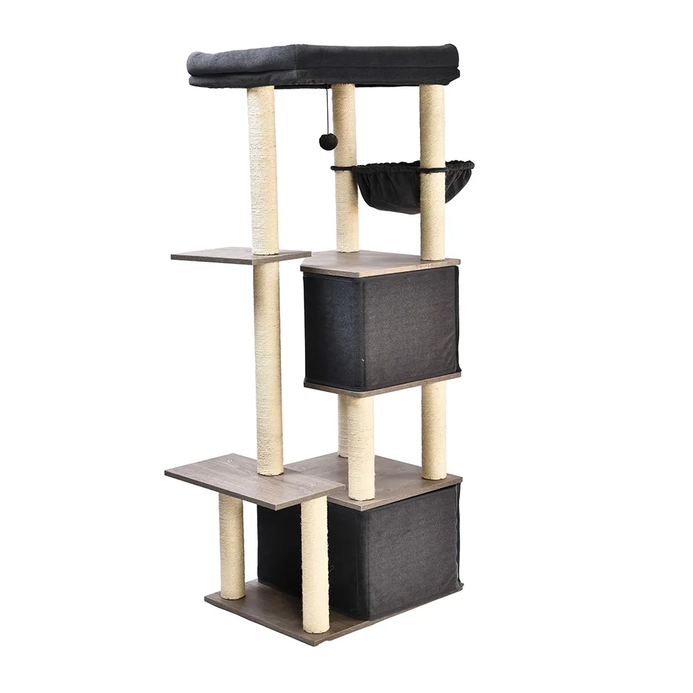 We are a 4 tier cat tower manufacturer with more than 20 years of experience. We offer customization options for color, size, fabric, pattern, logo, and other features.