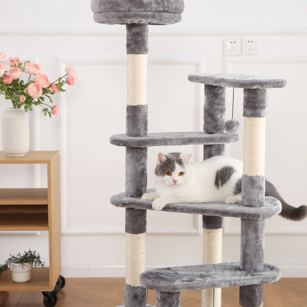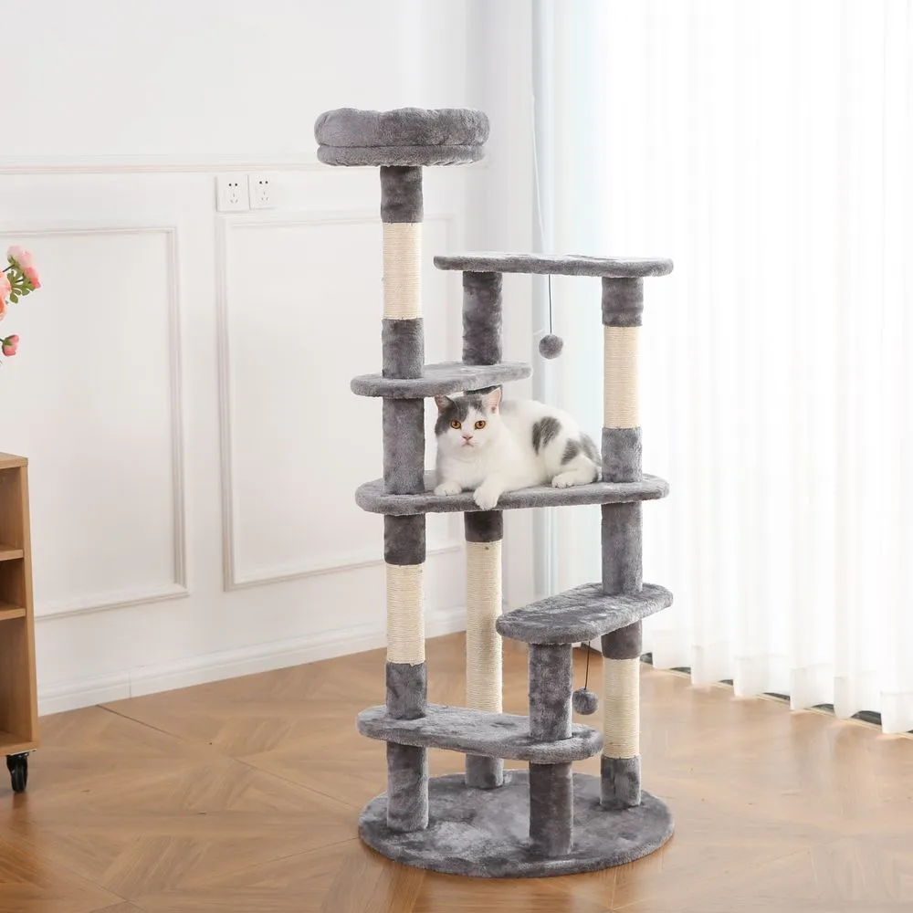 1.Removable Bed: Our 53 Inch Cat Tree understands the importance of flexibility. It comes with a removable bed, allowing cats to choose their preferred spot for rest and relaxation. Whether it’s a cozy hideaway or an open perch, this cat tree has it covered.