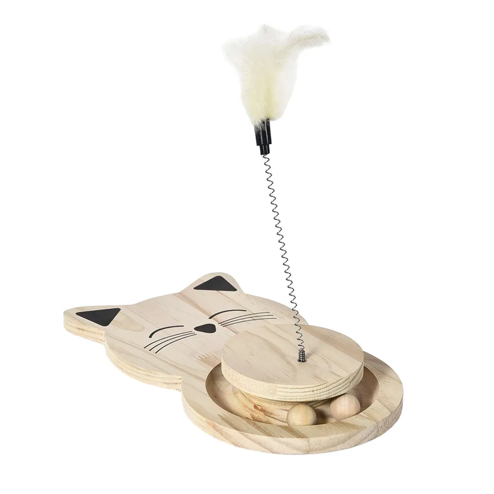 3. Durable Wooden Construction and IQ Plate: Crafted from durable wood, our cat toy scratch prioritizes longevity and sturdiness. The wooden construction ensures that the scratcher can withstand your cat’s scratching and playing activities over time. Additionally, the inclusion of an IQ plate adds a cognitive element to play, challenging your cat’s problem-solving skills and promoting mental stimulation.