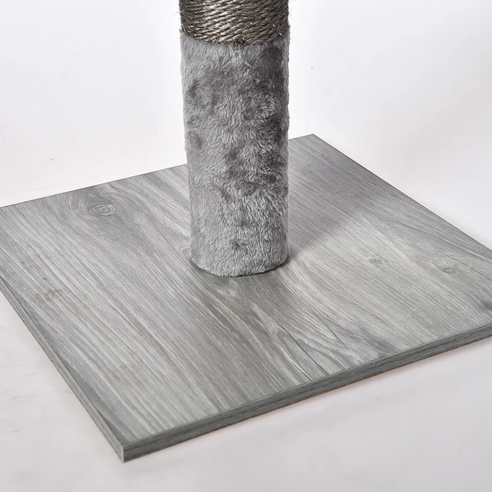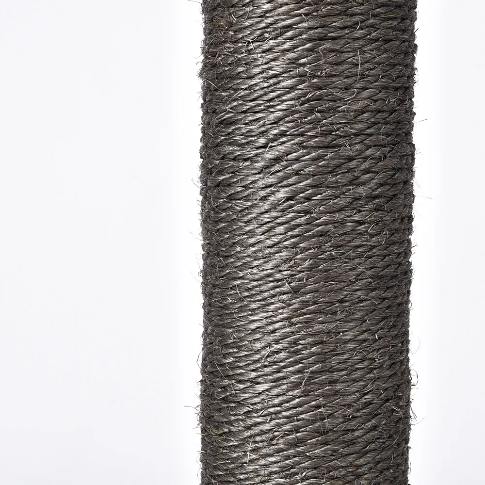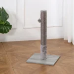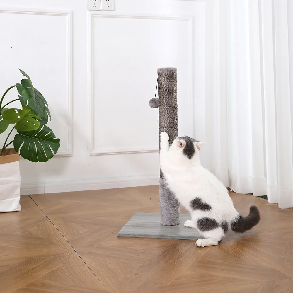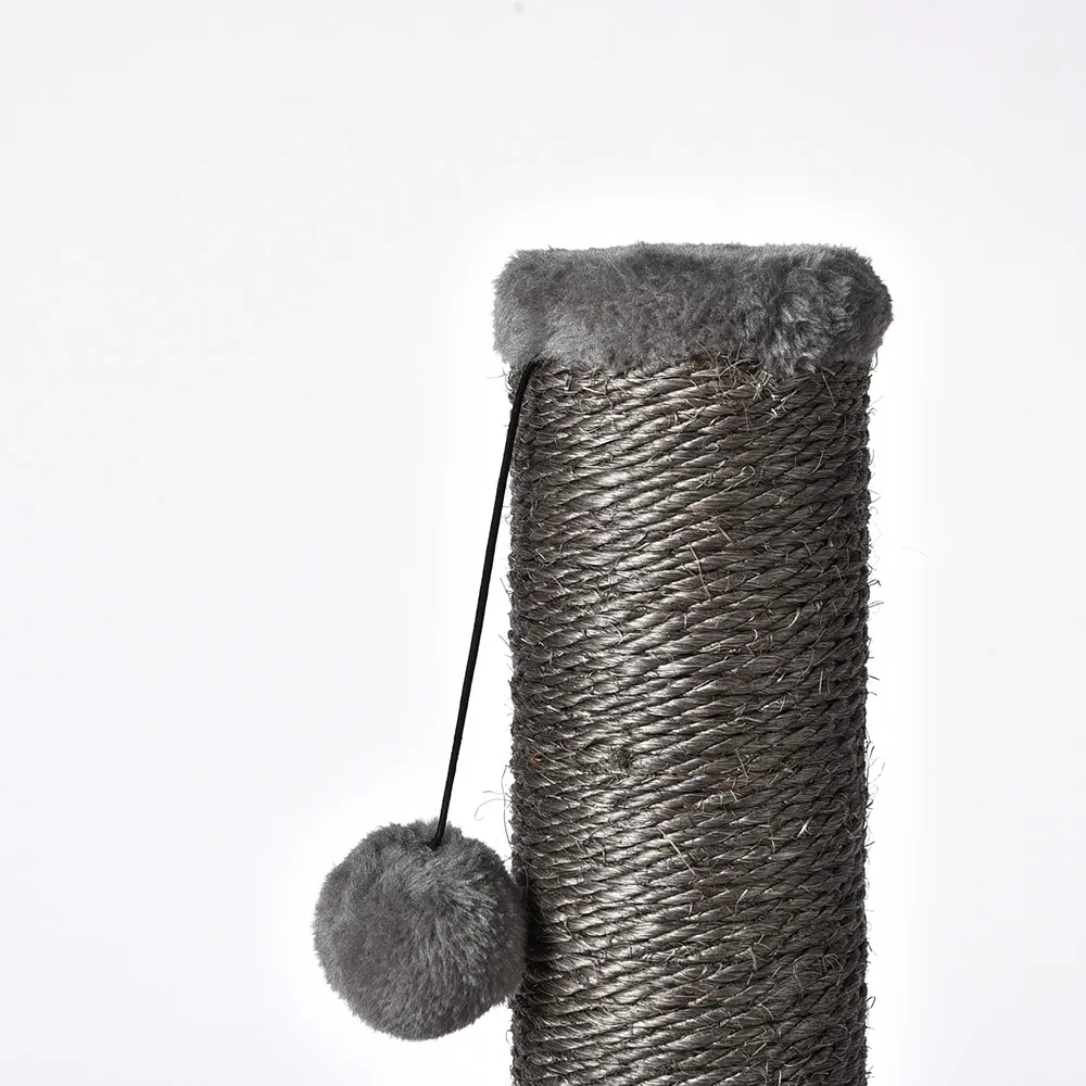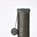 The Cat Tree Scratching Post combines durability and playfulness with its gray sisal-wrapped design and a fun plush ball, providing your cat with a perfect place to scratch, stretch, and play.