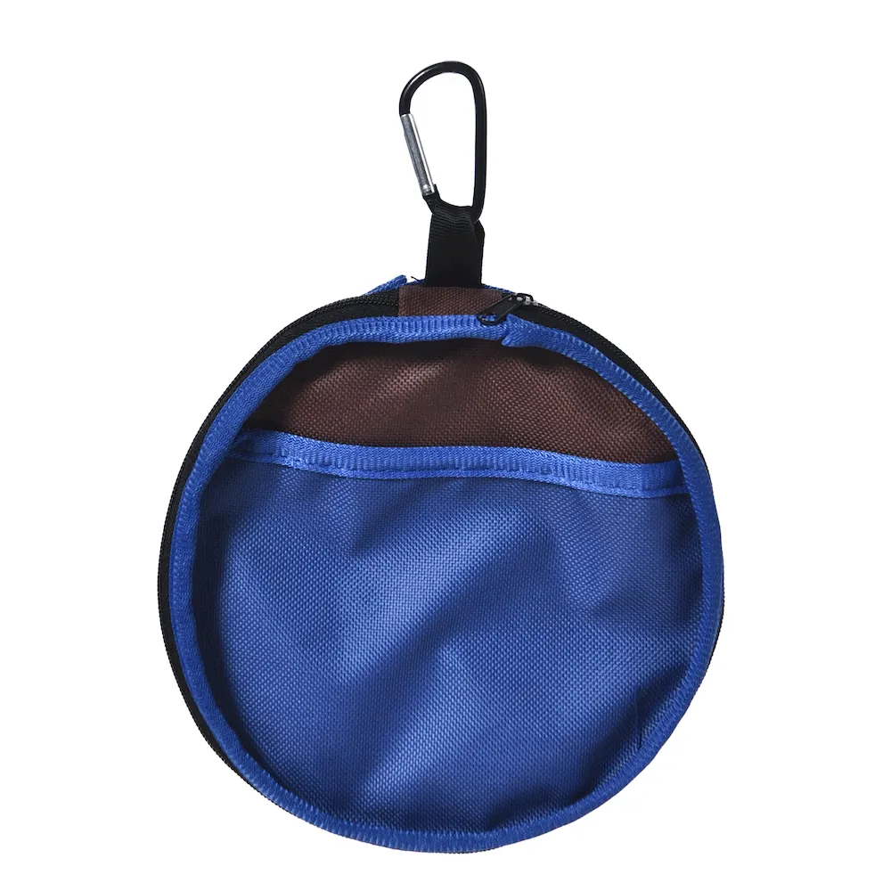 Crafted from durable 500D Oxford fabric, this set of two collapsible pet bowls is waterproof and ideal for travel. Easily zipped together for compact storage, they come with a carabiner clip for attachment. Available for wholesale with customization options.