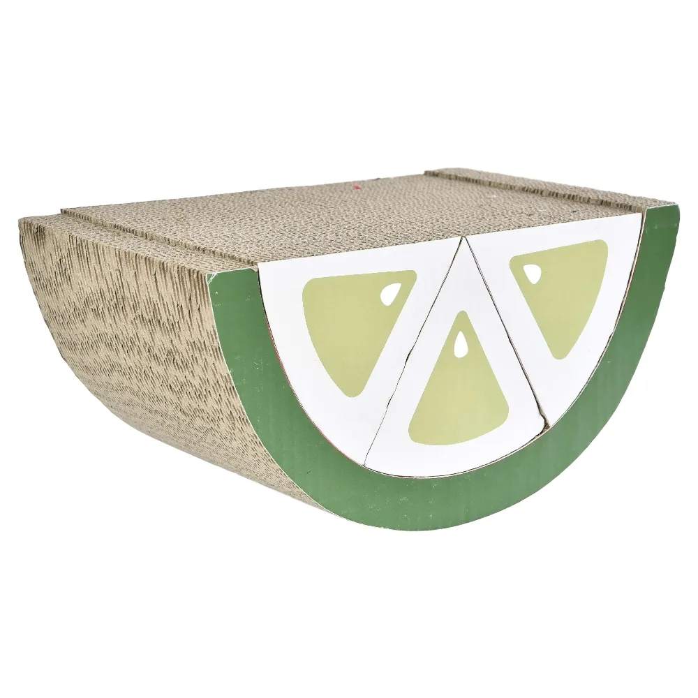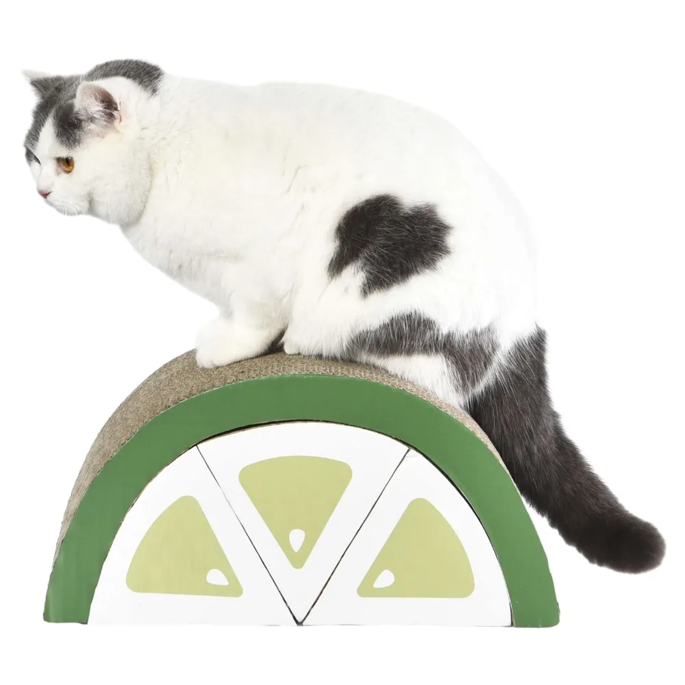 3. utilização autónoma: Para além da personalização, cada tábua de arranhar em forma de limão pode ser usada individualmente. Esta versatilidade torna os nossos brinquedos para gatos DIY adequados para vários espaços e preferências. Os gatos podem desfrutar da satisfação de arranhar e brincar, mesmo que opte por utilizar uma única tábua em vez de combinar várias peças.