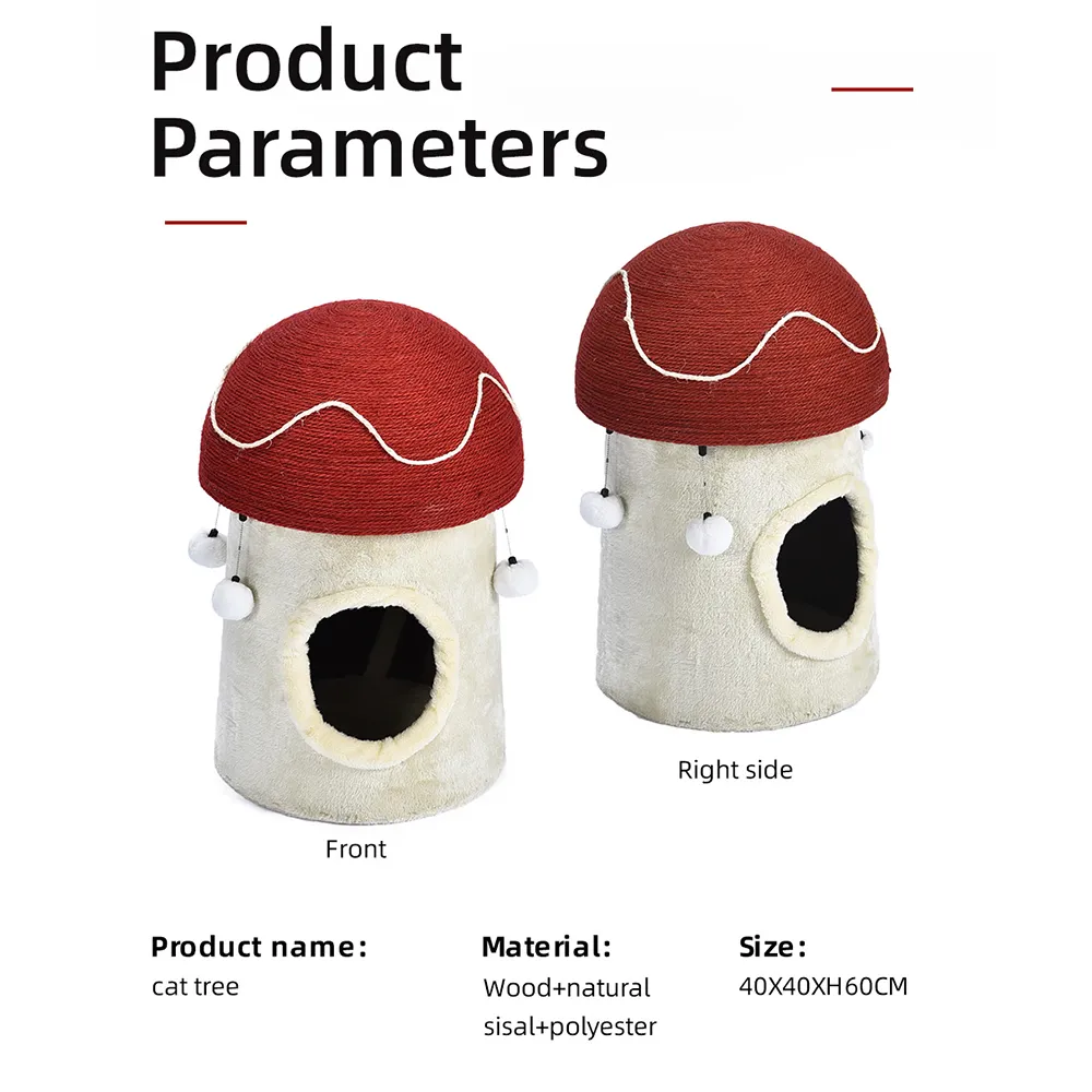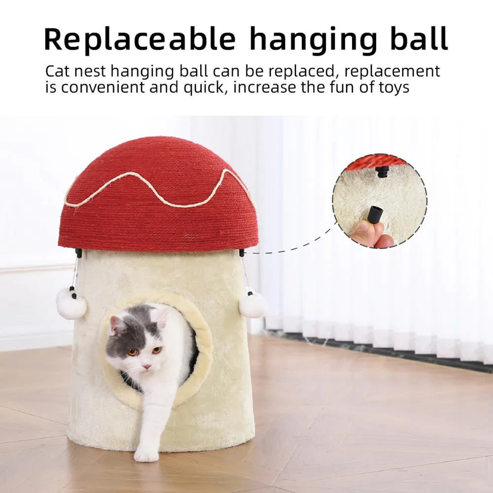 Transforme o tempo de brincadeira do seu gato com a Cama Cat Condo, com um design caprichoso de cogumelo, arranhador coberto de sisal, casa de gato acolhedora e bola de pelúcia pendurada.