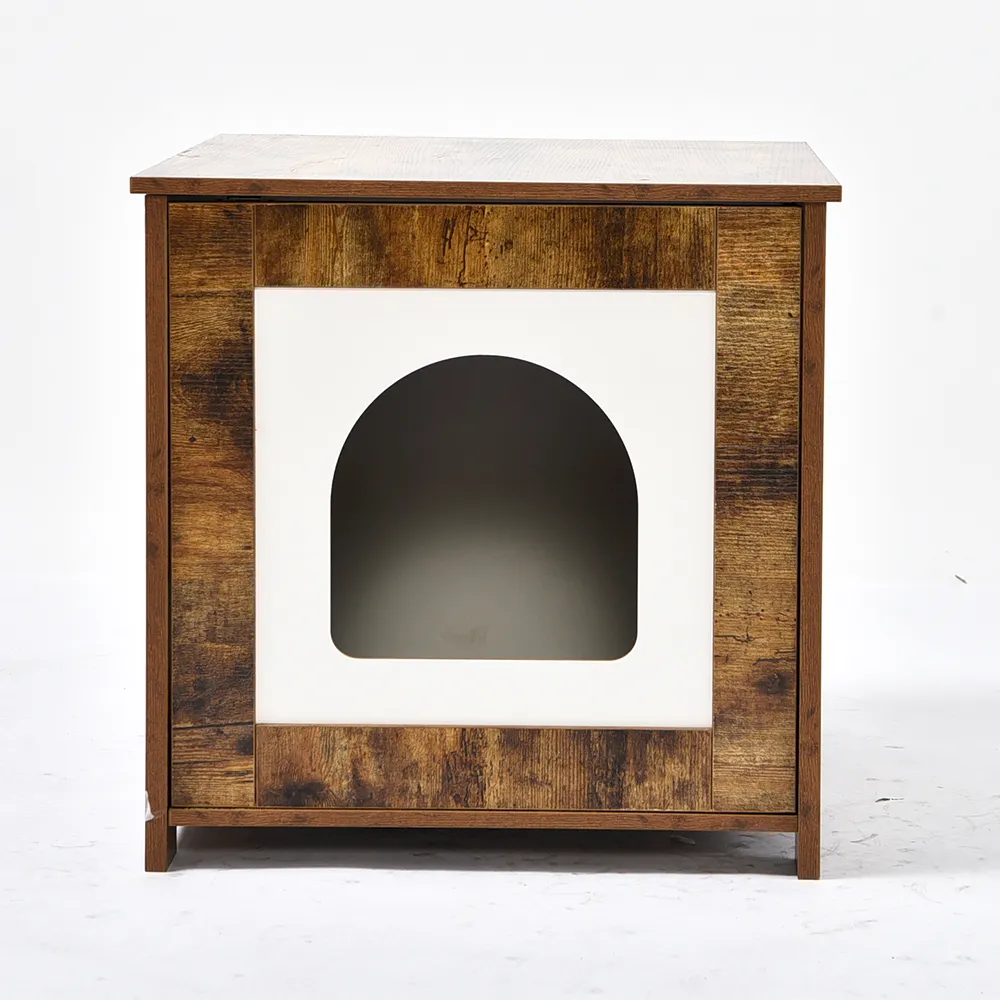 6.Armazenamento oculto: Para além da caixa de areia oculta, os nossos condomínios para gatos possuem um canal lateral com um design esculpido. Este espaço de arrumação prático mantém os objectos essenciais do gato organizados e facilmente acessíveis.