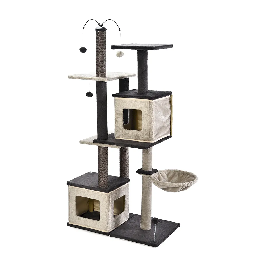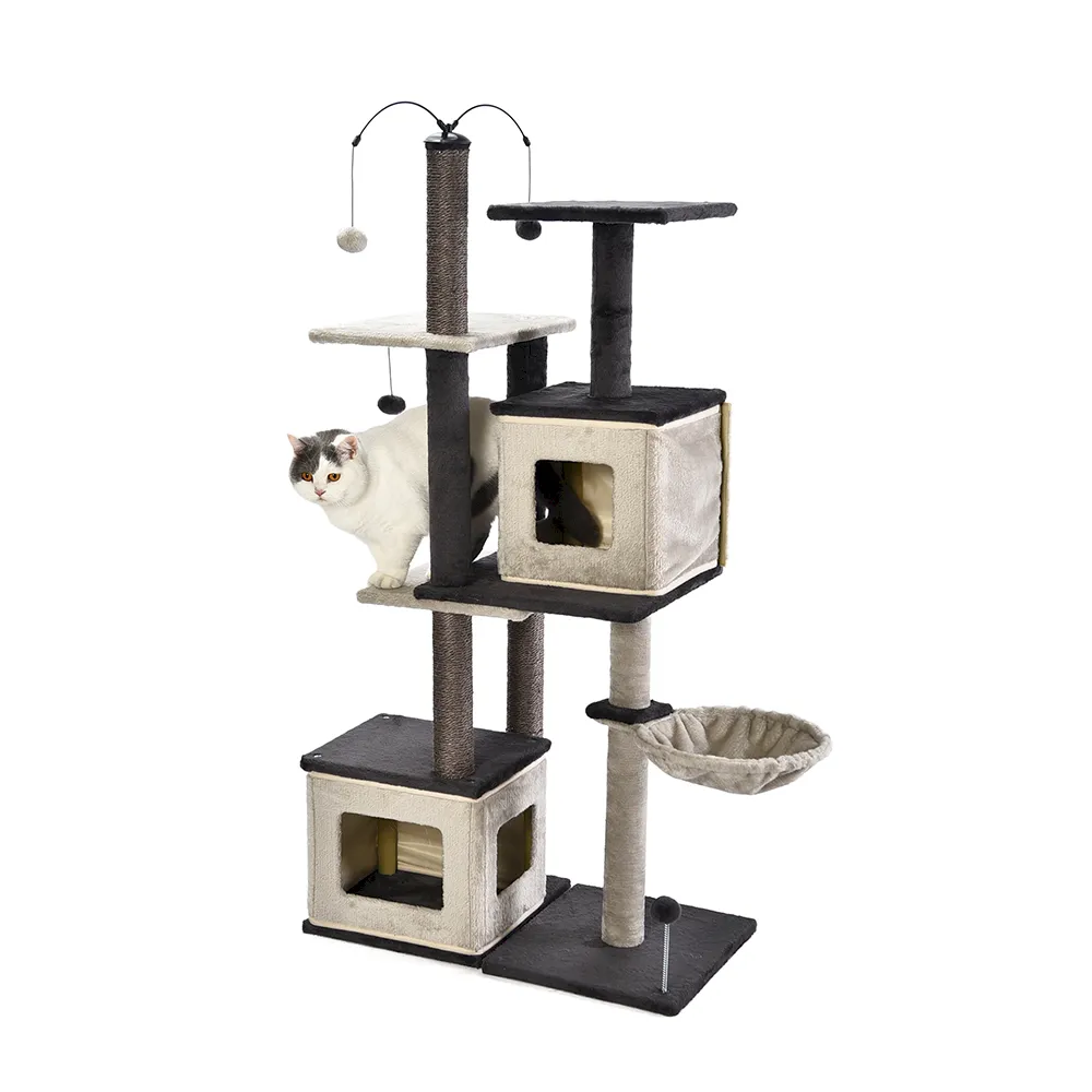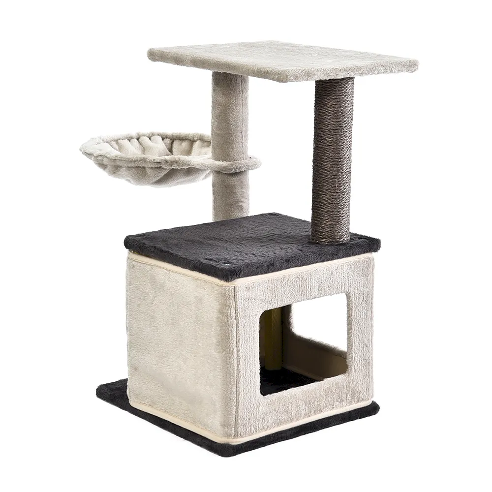 2. Комбинация "Сделай сам". Diy Cat Condo Tree воплощает в себе индивидуальность, позволяя владельцам кошек собрать его таким образом, чтобы он наилучшим образом соответствовал их питомцам и жилому пространству. Этот кошачий кондоминиум предлагает универсальные конфигурации для возвышающегося приключения или просторной игровой площадки, в соответствии с их видением. Это возможность для ваших клиентов персонализировать среду обитания своих кошек, способствуя как физическим, так и умственным упражнениям.