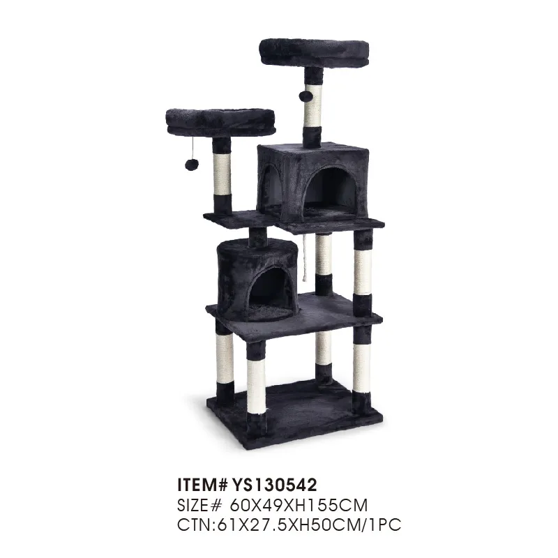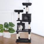• Двойные кошачьи кондоминиумы для комфорта: На дереве есть два уютных домика для кошек, в которых они могут уединиться и отдохнуть. Эти домики имеют плюшевую подкладку, что обеспечивает вашему питомцу теплое и комфортное место для сна.