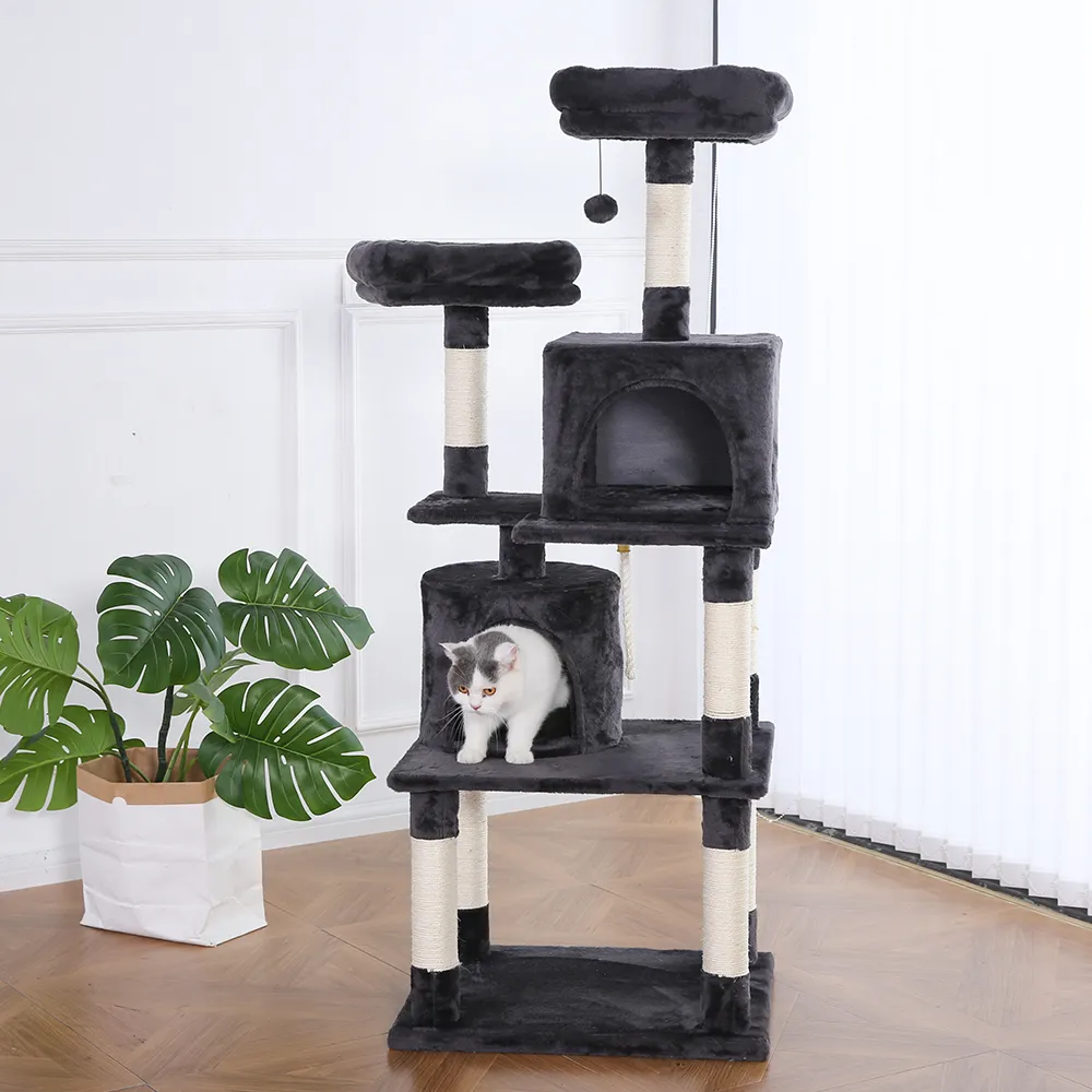 • Несколько когтеточек для здоровых ногтей: Оснащенный множеством когтеточек с сизалевым покрытием, этот Дерево для кошек на заказ обеспечивает достаточную поверхность для царапания, чтобы помочь вашей кошке сохранить здоровые когти. Эта функция также помогает перенаправить царапины подальше от мебели.