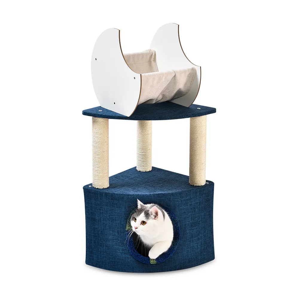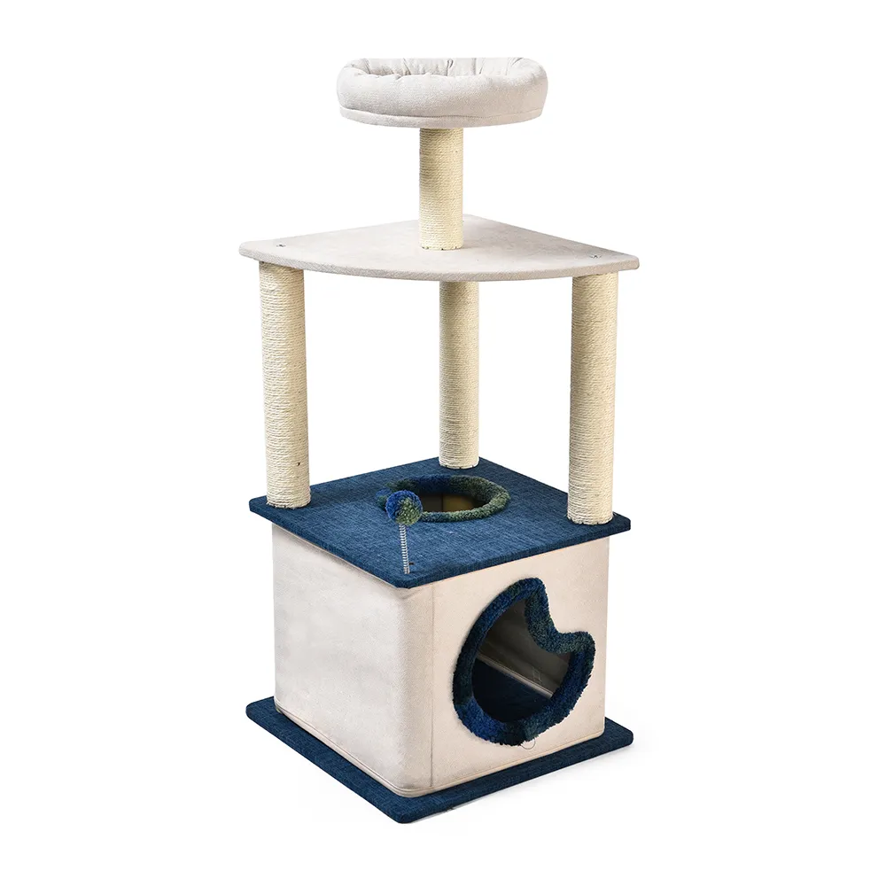3.Пост из натурального сизаля для удовлетворения царапин Владельцы кошек знают, как важно иметь хорошую когтеточку. Наша башня для кошек включает в себя столбик, обмотанный натуральным сизалем, который идеально подходит для удовлетворения естественного желания кошки почесаться. Прочный сизалевый материал можно заменять, что обеспечивает долговечность использования и предоставляет кошкам специальное место для царапанья.