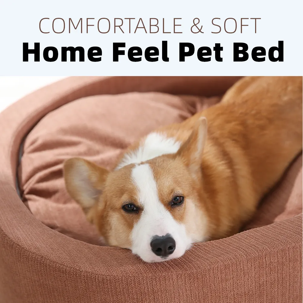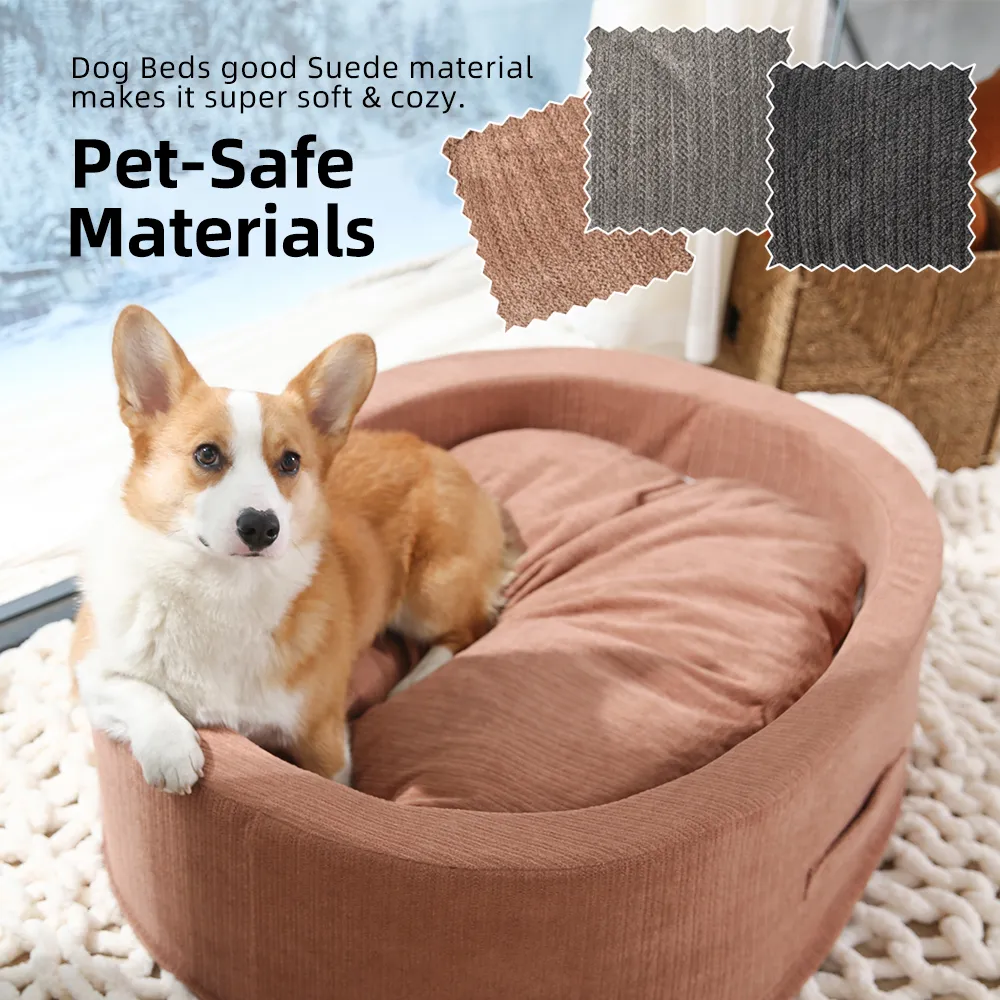 Овальная кровать для собак Моющаяся замшевая роскошная поддержка Bolster Поднятая кровать для собак Диван