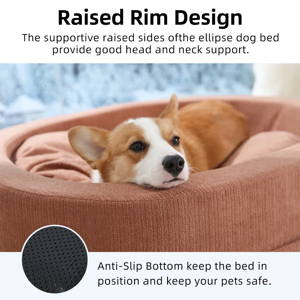 The Овальная кровать для собак Сочетание комфорта, повышенной поддержки и гладкой замши делает этот диван идеальным местом для отдыха и крепкого сна вашей собаки.