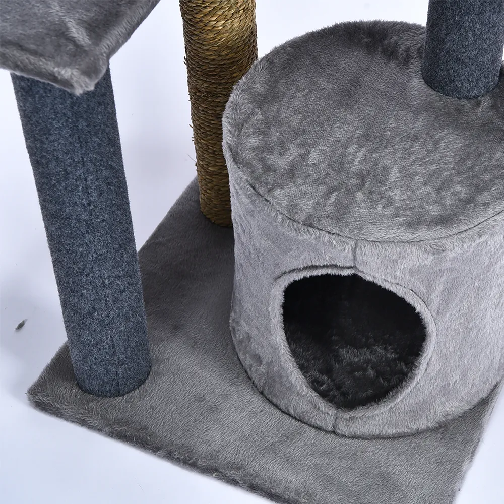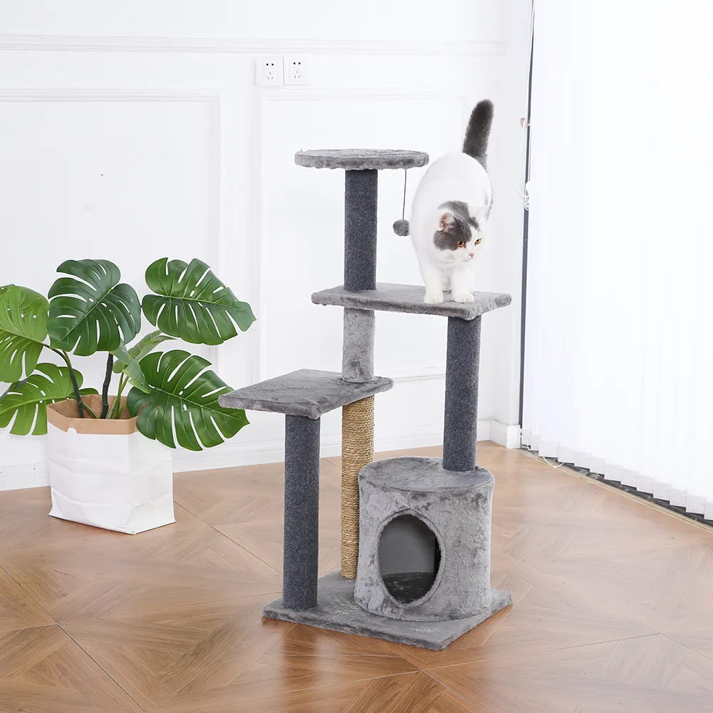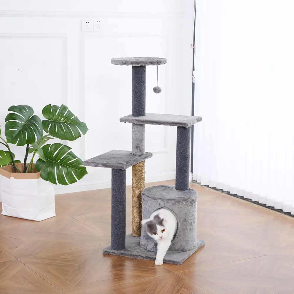 Simple Cat Trees House - это многоуровневое дерево для кошек с плюшевыми шариками, несколькими платформами, уютным домиком и когтеточками из разных материалов, обеспечивающее вашей кошке бесконечные развлечения и комфорт.